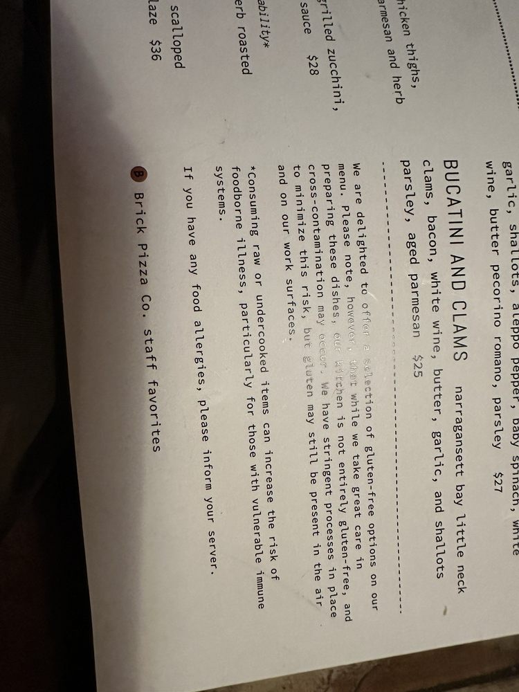 Brick Pizza Co. in Bristol, RI offers a wide range of Italian cuisine, with a focus on delicious pizzas. The menu includes appetizers like BBQ wings and meatballs, soups and salads such as beet salad and butternut squash soup, and pasta dishes like chicken broccoli alfredo and chicken Marsala. Customers rave about the cozy ambience, friendly service, and tasty food options. Standout dishes include the pepperoni pizza, chicken Parmesan, and homemade pastas. The restaurant also features a trivia room for entertainment, perfect for a fun night out. With a diverse menu, accommodating staff, and inviting atmosphere, Brick Pizza Co. is a must-visit spot for Italian food lovers.